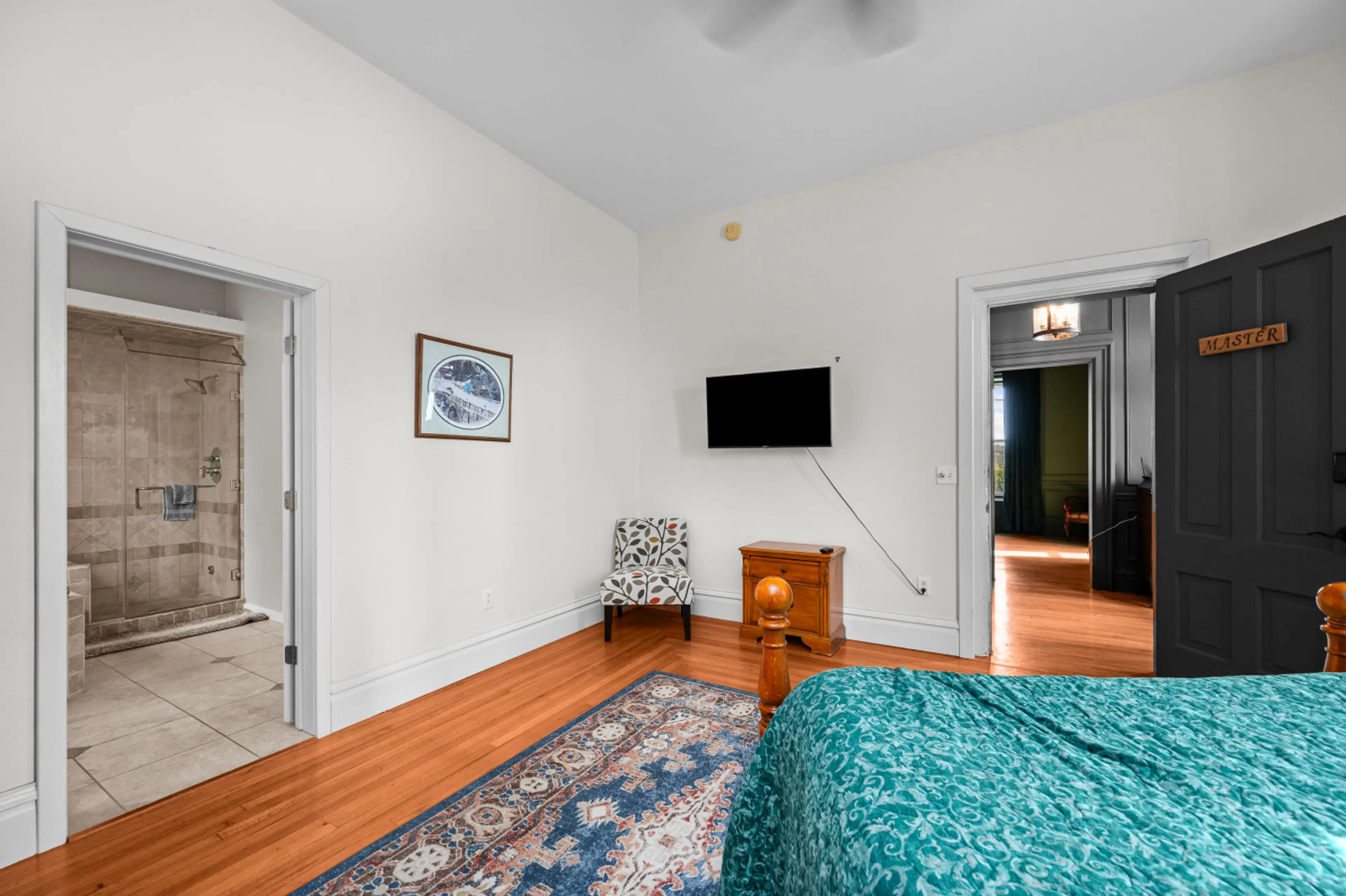 Turn yourself in, to one of our most popular suites! The only suite on the main floor has a brand new queen bed for 2 inmates. At the end of a long day of travel or leisure slip into the air massage tub or shake the cold out of your bones with the luxurious steam shower, as all of your problems and...